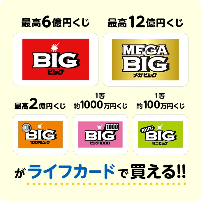「BIG」、「MEGA BIG」、「100円BIG」、「BIG1000」、「mini BIG」がライフカードで買える!!